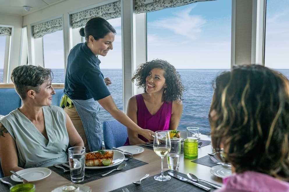 - Of her many amenities and features, the most appealing is her outdoor dining and deck space, which offers a range of panoramic views of every region’s rich avian and marine life.